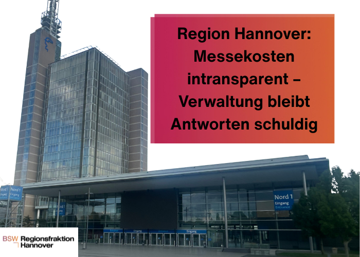 Region Hannover: Messekosten intransparent – Verwaltung bleibt Antworten schuldig Die Antwort der Regionsverwaltung auf die Anfrage der BSW-Ratsfraktion zur Beteiligung