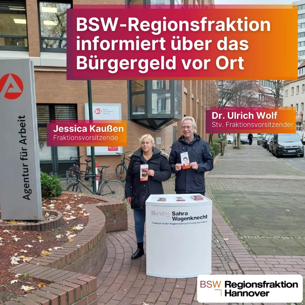 In dieser Woche waren die Fraktionsvorsitzende der BSW-Fraktion in der Regionsversammlung, Jessica Kaußen und ihr Fraktionsvize Dr. Ulrich Wolf, erneut