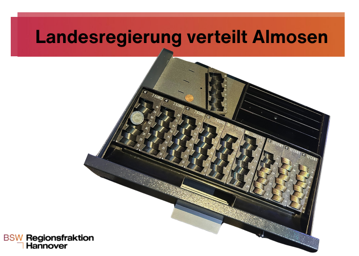 BSW-Regionsfraktion: Landesregierung verteilt Almosen – Kommunen bleiben auf Schulden sitzen Für die Vorsitzende der BSW-Regionsfraktion, Jessica Kaußen, ist das neue