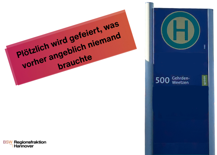 Zur Berichterstattung der Hannoverschen Allgemeinen Zeitung vom 29.07.2025 über den Erfolg der verlängerten SprintH-Linie 500 erklärt der verkehrspolitische Sprecher der